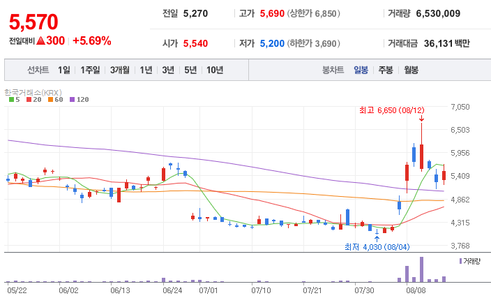 - 상한가: 10,550원 / 하한가: 5,690원